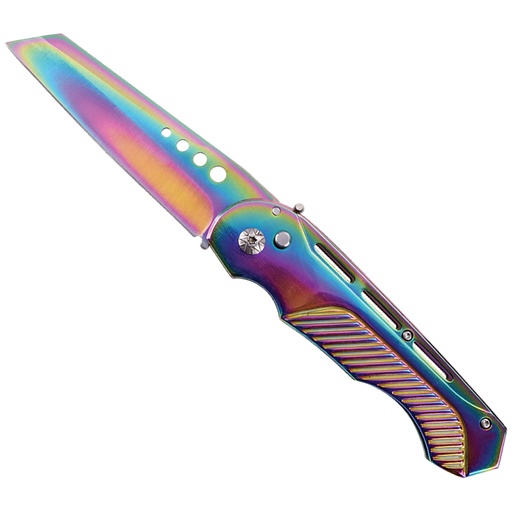 Prism-Edge Push-Button Wharncliffe Automatic Knife - Rainbow Steel