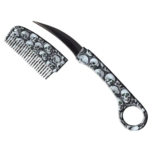 Green-Eyed Reaper Karambit Comb Knife - Black Skull