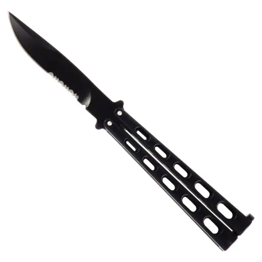 Stealth Serration Utility Butterfly Knife - Black Steel