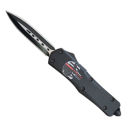 Covert Patriot Punisher-Flag OTF Knife - Matte Black Aluminum