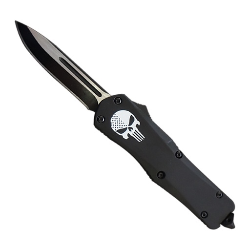 Punisher Skull Single-Action OTF Knife - Two-Tone Black